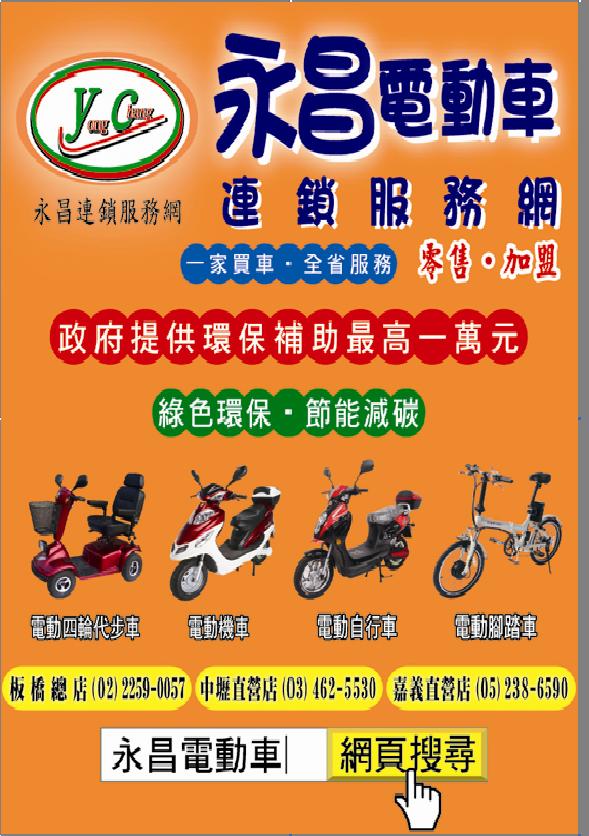 永昌電動車連鎖服務網 專業店面/電動車/電動機車/電動腳踏車/電動代步車/國旅卡特約商店/創業加盟/專人輔導/用心負責/全國僅此一家